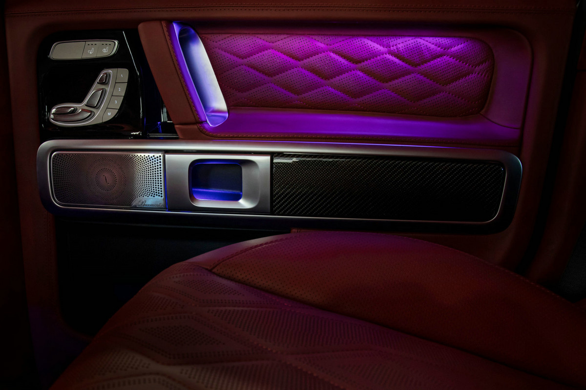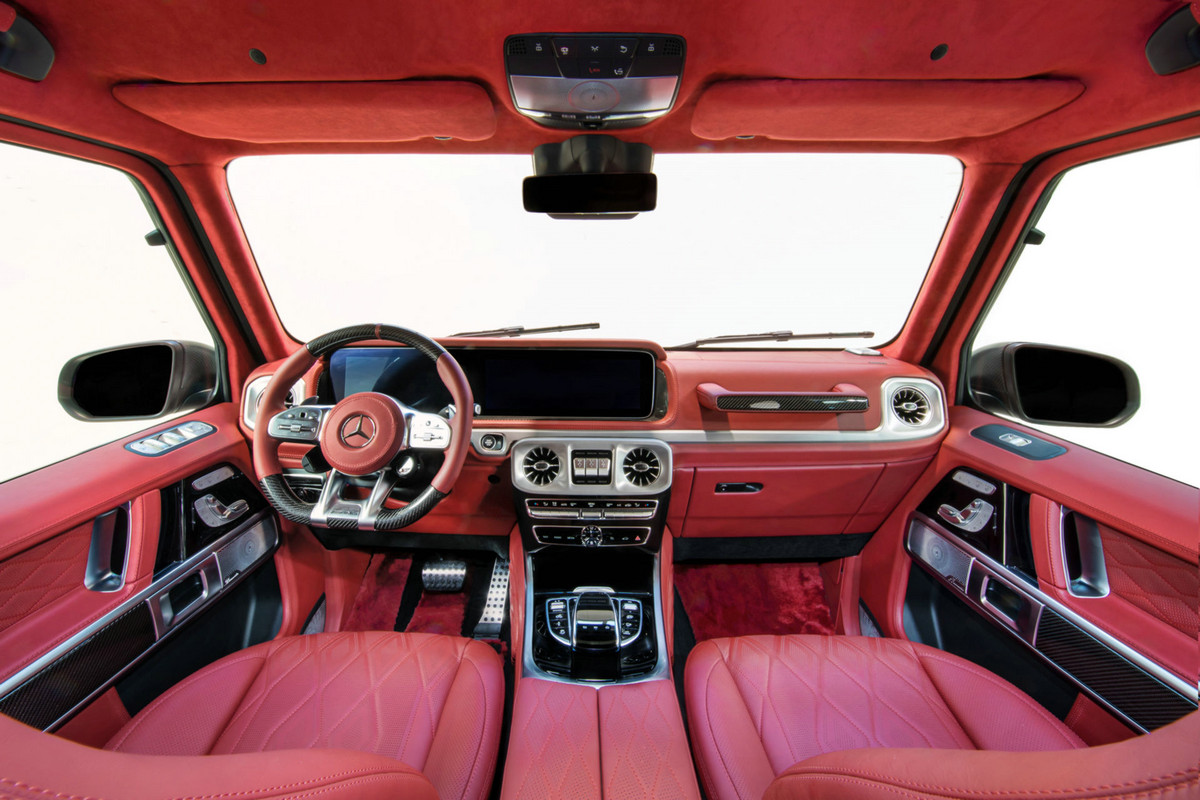 Hofele对G63的内饰进行了彻底的改造,用鲜红色的皮革和Alcantara装饰了整个车柱和车头。奔驰还在第二排摇晃着独立的长椅,并包括一个新的中控台,内置控制面板,存储和无线充电。