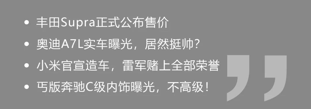 万众期待的丰田Supra终于在本周五公布了国内的售价,其中2.0T车型起售价49.6万元,3.0T车型的售价为62.6万元,与同平台的宝马Z4价格(48.88-63.38万元)比较接近。这也说明丰田并不认为Supra的定位比宝马Z4低,甚至由于其硬顶Coupe的结构,理论上车辆的刚性和驾驶感受会比宝马Z4这种软顶敞篷车更好。