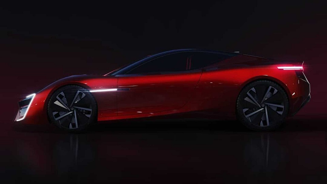 车身侧面,整车外观轮廓线条十分流畅,较低的车身也让它看上去更具运动气息。同时,新车采用双门设计,隐藏式门把手让整车更具神秘感。此外,两侧多辐式轮圈让新车更具动感元素。