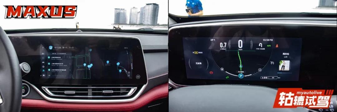 双联屏的实用性也非常高,首先中控屏幕向驾驶员一侧倾斜,便于操作,并且屏幕也不会出现反光现象,轱辘哥开着试驾车在阳光明媚的海南行走,每次都能清晰地看到屏幕的信息。