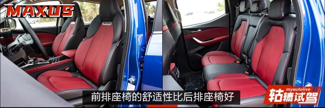 底盘舒适性同样是前后排座椅的表现不同。上汽大通MAXUS T90采用了前双叉臂独立悬挂和后钢板弹簧非独立悬挂,坐在车内可以感觉到前排座椅传递来的颠簸较少,而后排座椅较多。不过这款车对悬挂调校比较到位,后排座椅主要以小颠簸为主,对整车的行驶舒适性没有太大影响。