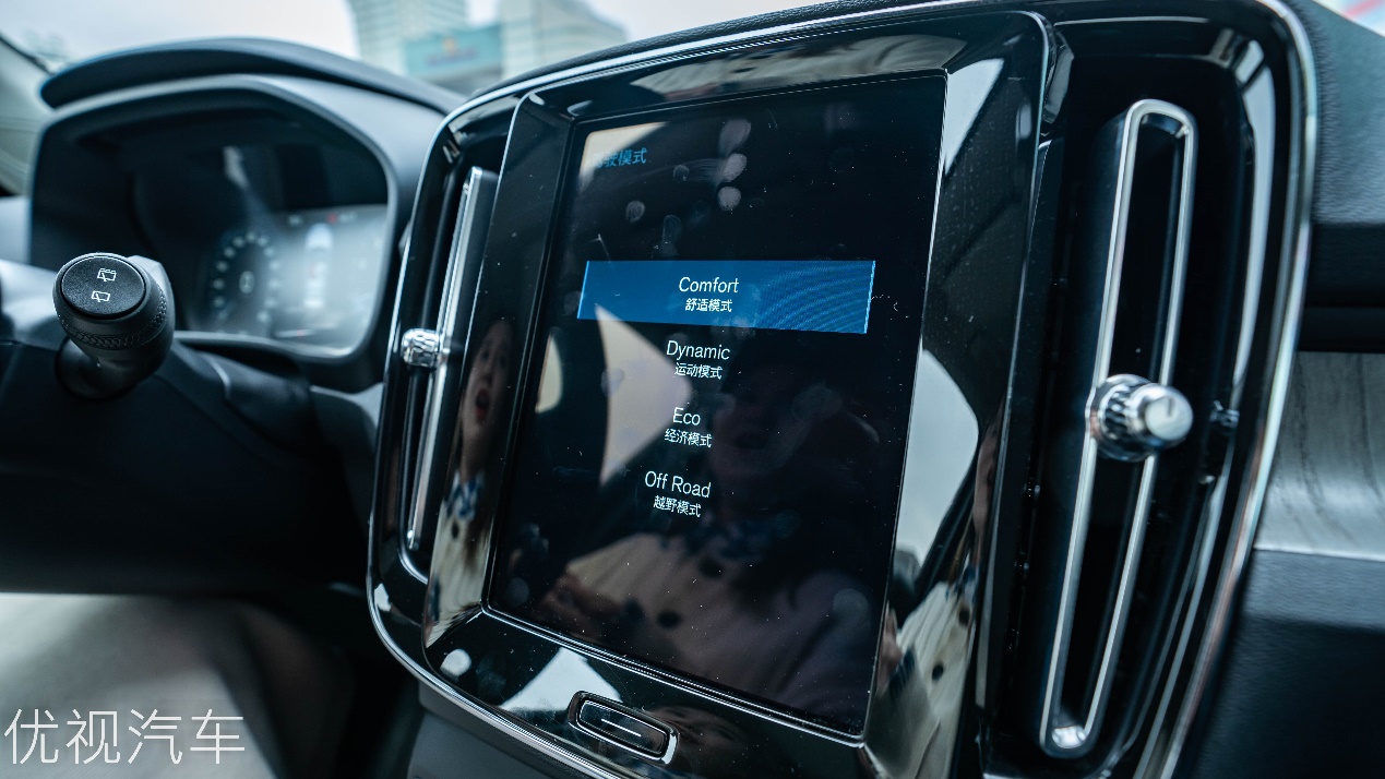 经过城市铺装路面的试驾后,小姐姐决定把沃尔沃XC40开到湘江边上的非铺装路面来感受它的四驱系统。敢挑战非铺装路面,小姐姐自然是做足了功课。在售价23万左右的豪华紧凑型SUV中也只有沃尔沃XC40 T4四驱智行时尚版带有四驱功能,而且它还针对不同路况环境和用户的喜好提供了5种驾驶模式,当选择Off-road模式时,系统会在20-40km/h的时速下优先保证动力输出,提高恶劣路况的行驶性能。