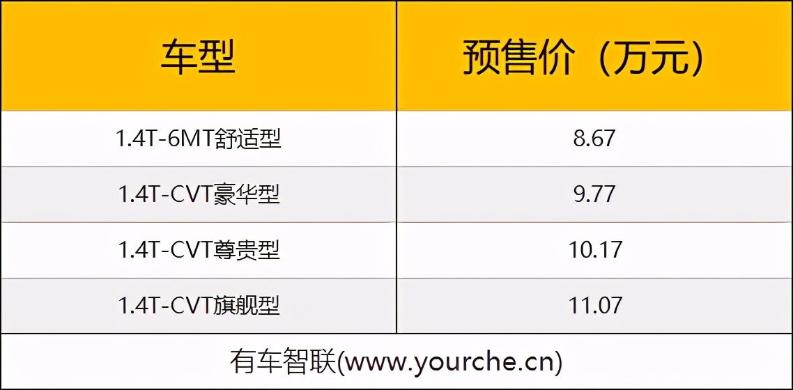 动力方面,新车将搭载1.4T发动机,最大输出功率为141马力,峰值扭矩为235牛·米,传动系统与之匹配的是CVT无级变速箱以及6速手动变速箱。关于新车的更多信息,我们将持续关注报道。