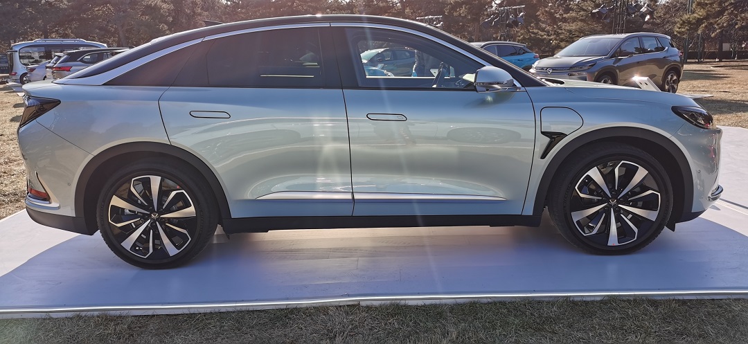 车身侧面,新车采用了当下十分流行的隐藏式门把手,增强了车侧的整体感,也能够更好的遵循空气动力学原理,降低风阻。新车的A柱、B柱、C柱以及车顶均进行了熏黑出了,从而营造出分离式座舱的视觉效果,再配上花瓣式轮圈造型,使车侧看上去更加运动。车身尺寸方面,新车的长宽高分别为4930/1940/1599mm,轴距更是达到了2915mm,预计能够为后排乘客提供十分可观的乘坐空间。