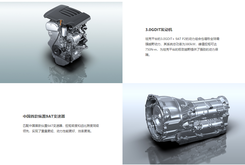 首先是在平台和动力系统上,这款皮卡要用上长城宣传已久的3.0T+9AT,应该就是之前坦克300 (配置|询价)说要搭载的那套全新的动力系统,这套系统总功率为380kW,峰值扭矩可达750N·m,账面数据相当强悍。平台则就是大家耳熟能详的坦克专业越野平台,追求极致的越野性能。