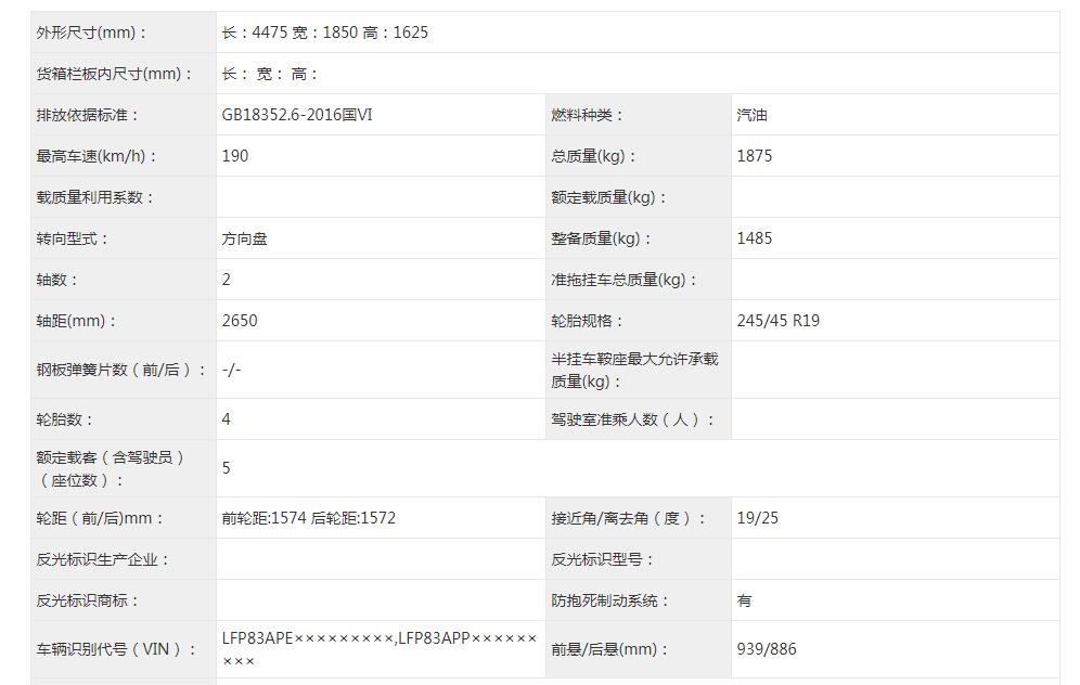 新车的长宽高分别为4475/1850/1625mm,轴距为2650mm,加长了38mm,其它无变化。