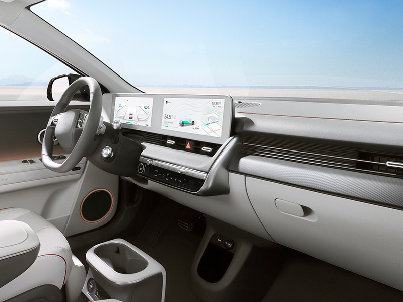 IONIQ(艾尼氪)5车内贯彻了“Living Space(生活空间)”这一设计主题,采用了极简风格,并使用了大量绿色环保材质打造,包括环保合成皮革、生物涂料以及天然可再生纤维等,坚持了可持续发展理念。同时,新车还配备了双12英寸联屏设计,进一步提升了车内的科技氛围。动力方面,IONIQ(艾尼氪)5采用全轮驱动,最大输出功率可达230千瓦,0-100km/h加速时间为5.2秒,WLTP续航里程为450公里。在快充模式下,该车可在15分钟内完成20%-80%电量的充电。