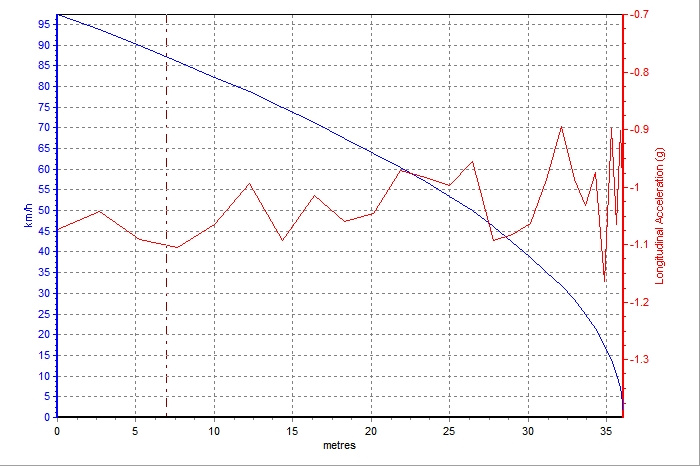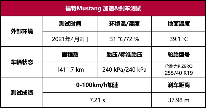 (福特Mustang100—0km/h制动成绩:37.98m)