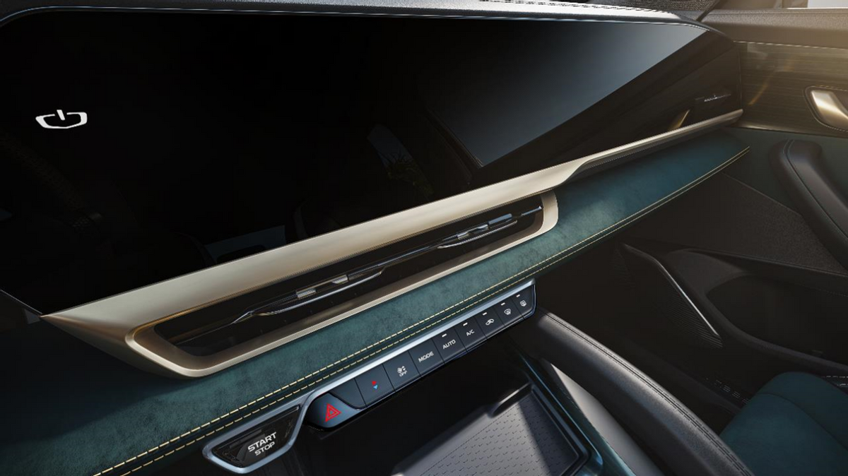 内饰部分,新车采用中控屏与副驾驶娱乐屏双联屏设计,特别是中控屏的区域,中控台采用双拼色设计。