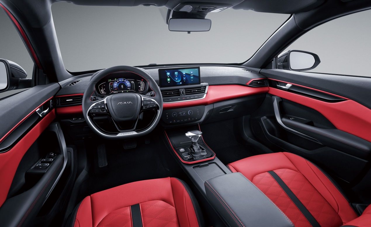新车的内饰也很上档次,采用多处软质包裹,红黑撞色的内饰颜色也让车内看起来动感十足。