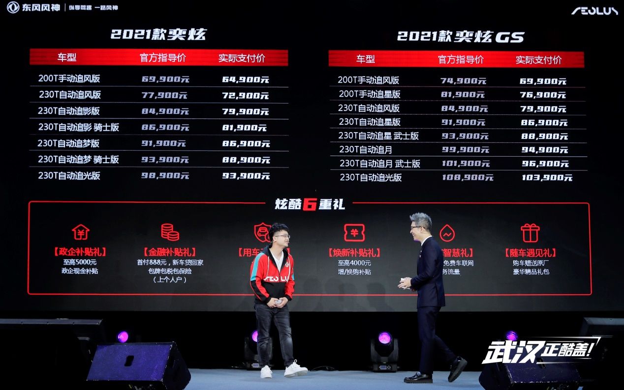 在这一天,东风风神奕炫 (配置|询价)家族旗下“双车”正式上市。2021款奕炫共推出7款车型,实际支付价为6.49-9.39万元;2021款奕炫GS共推出8款车型,实际支付价为6.99-10.39万元。现在购车还可享金融补贴、焕新补贴等六重炫酷购车礼。