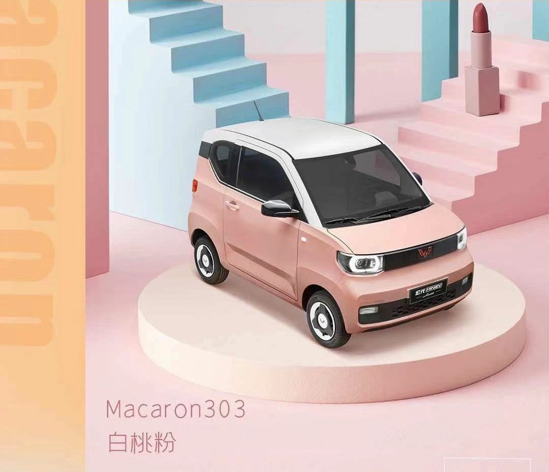宏光MINIEV马卡龙版保持了原本小巧可爱的身姿,在配色上玩出了新花样。五菱联合世界权威色彩研究机构PANTONE UNIVERSE,发布了“五菱春色”,在马卡龙车型身上率先采用白桃粉、牛油果绿、柠檬黄三种鲜艳亮眼的配色,车顶还有黑、白两色可供选择,从配色上就宣告其“女性专属”的身份。
