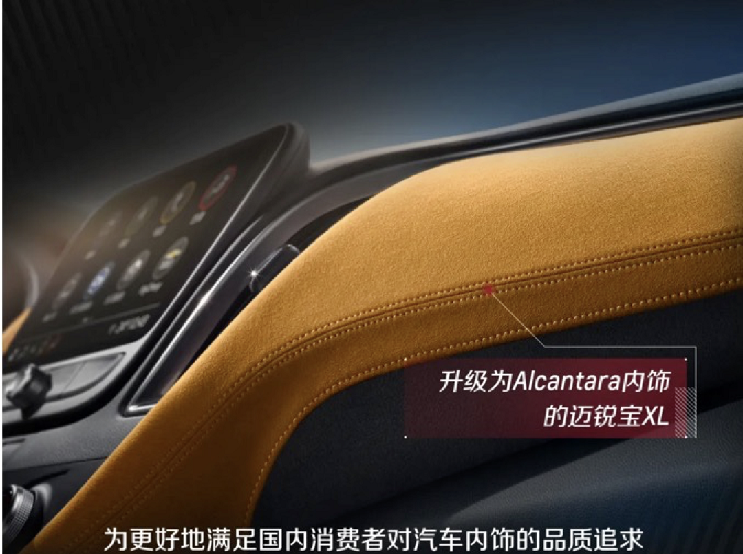 与现款车型相比,新车将大量皮质包裹换为Alcantara材质,包括方向盘、副仪表盘、中央扶手、座椅、门板等处,将原本以黑色为主色调的内饰加入更加丰富的色彩和更加细腻程度材质,使车厢内饰氛围看上去更加运动,也更加有质感。除了内饰材质升级以外,新车在配置、动力、外观方面不会有过多的调整。关于新车的更多信息,我们将持续关注报道。