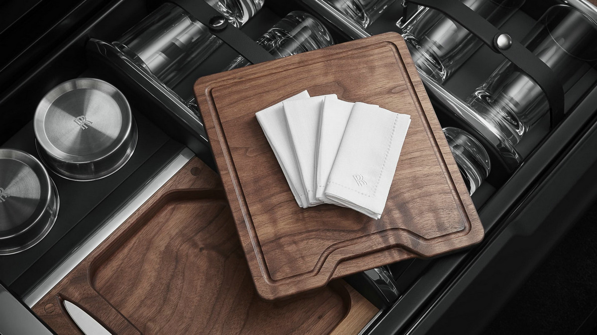 劳斯莱斯SUV的其他额外服务还有 "接待服务",该服务配有玻璃器皿和餐具,可为多达8人制作和/或供应不同的饮料。此外,后备厢可容纳库里南特有的另一项功能:观景套房。