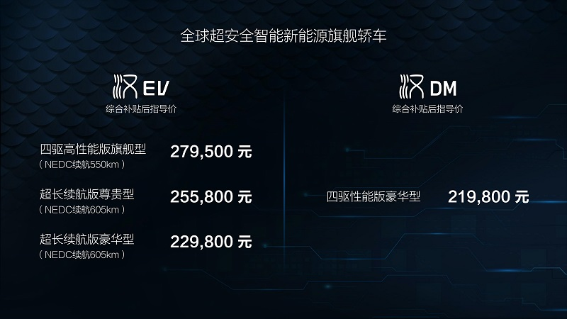 从车型规划到量产上市,汉系列车型历经十年光景,在此期间,比亚迪将IGBT芯片、DM双模技术以及“刀片电池”等技术融入到比亚迪汉系列车型上,从3.9秒破百到32.8米的百零刹车距离,再从DiLink 3.0智能网联系统到605km的续航能力,无一不向我们展示了比亚迪的深厚底蕴。
