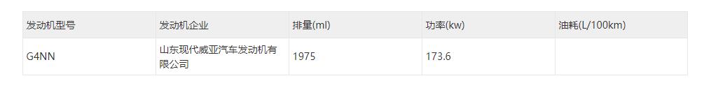 动力方面,新车将提供由北京现代汽车有限公司所生产的1.5T(型号G4FS)和由山东现代威亚汽车发动机有限公司2.0T(型号G4NN)两款发动机,其最大功率分别为125千瓦和173.6千瓦。