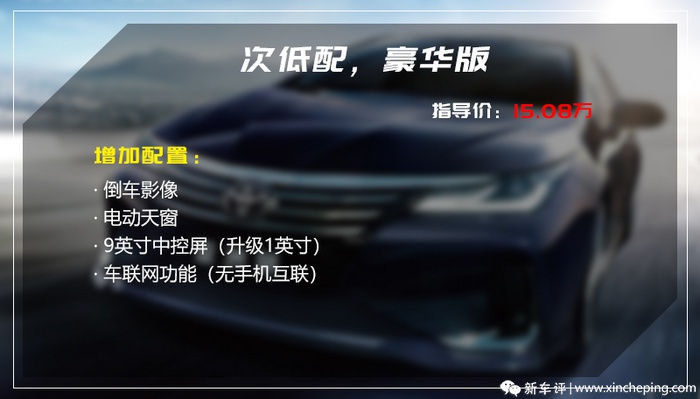 要说这些升级的项目值不值差价,值得,但从实际使用效益来说,增益并不明显。仅论进取版和豪华版的配置来看,这两个版本调整优化下成一个配置会更合理,即把倒车影像和电动天窗加到进取版上,同时车机系统依然采用低配带手机互联功能的版本,如此它的选择就清晰多了。就现在这个版本的配置来说,它适合那些追求性价比,但又不愿意自己后期动手的群体。想想后期优惠稳定后比同配置卡罗拉贵个小两万左右,却能获得更宽敞的车内空间,不免为另个用车方向上的选择。
