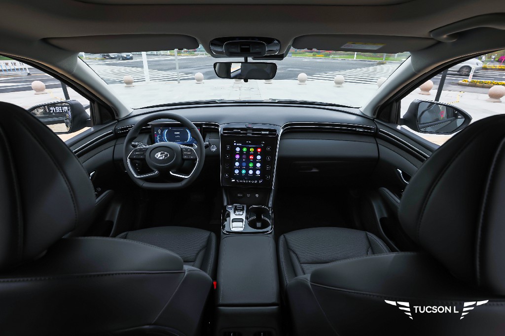 第五代途胜L内饰采用了家族全新的设计语言,环抱式座舱配合上10.4英寸中控屏和10.25英寸开放式仪表,视觉上极具有豪华感与科技气息。