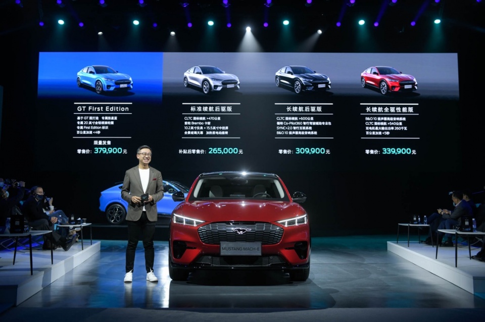 2021年4月13日,福特纯电SUV Mustang Mach-E (配置|询价)正式上市,售价区间265,000-379,900元,并同时接受预定。首发车型包含以GT车型为基础打造的GT First Edition限量版,该车型将提供GT专属掠星蓝车身颜色,售价379,900元。