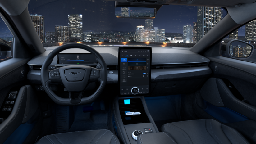 外观继承了家族运动属性,不好意思Mach-E的内饰,并没有太多运动元素,究其原因就是,它是一辆新时代产物的电动车,它需要简约。