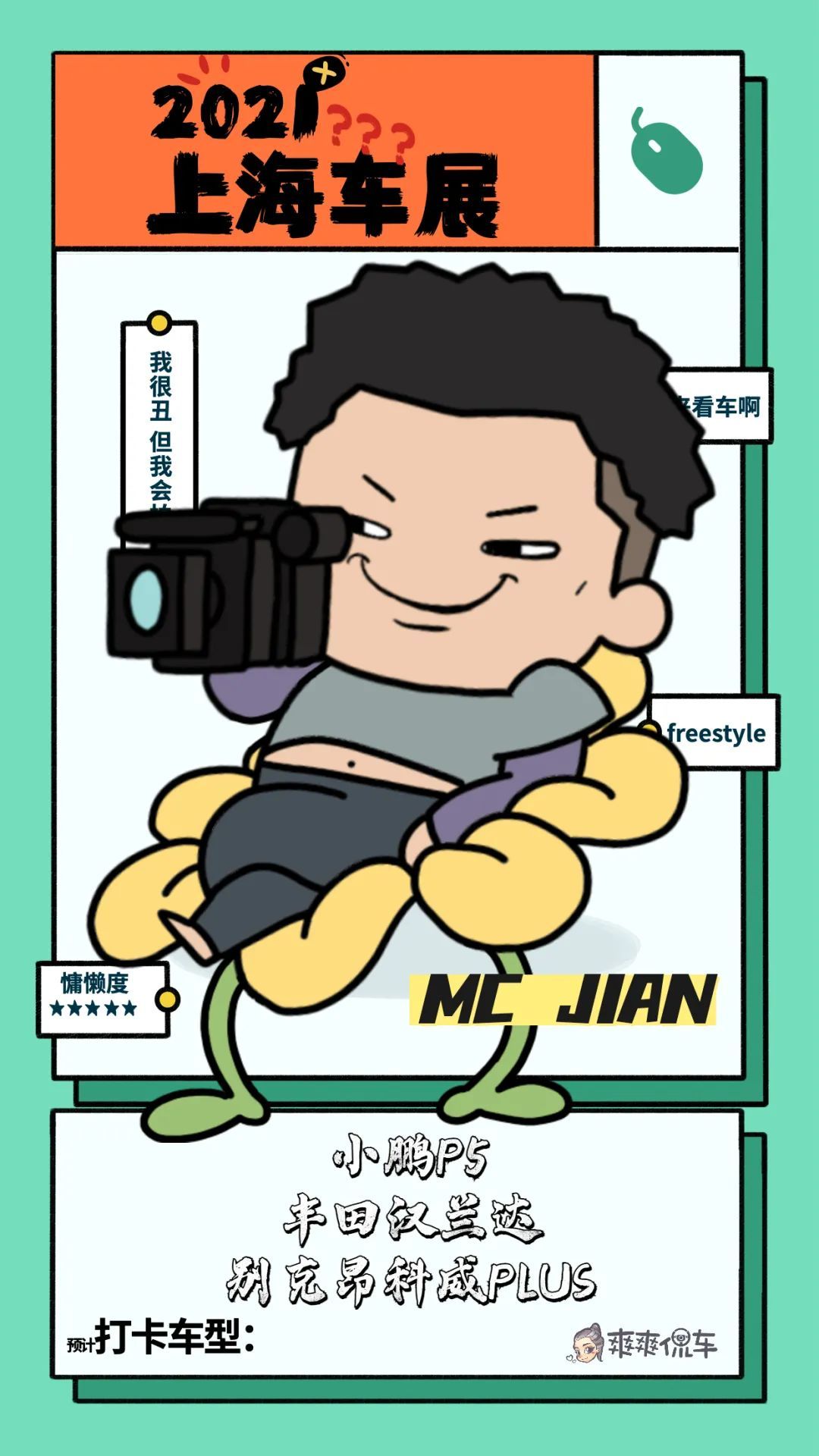 爽爽侃车幕后BOSS花总本次将会带队出征,用他壕无人性的领导力and接地气的辨识力让我们在本次车展大放异彩。当然他也会带来几款车的介绍,不要担心听不懂,因为有字幕。