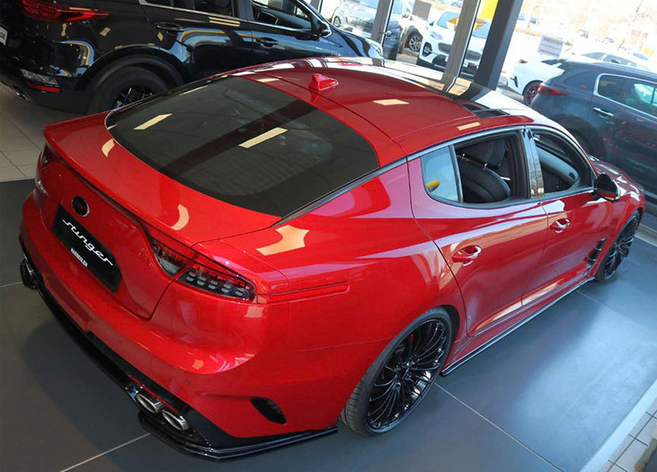 外观方面,斯汀格前脸配备了虎啸式进气格栅,搭配造型别致的大灯组,视觉效果更显精致,底部包为呈现三段式布局,整个车头时尚激进。