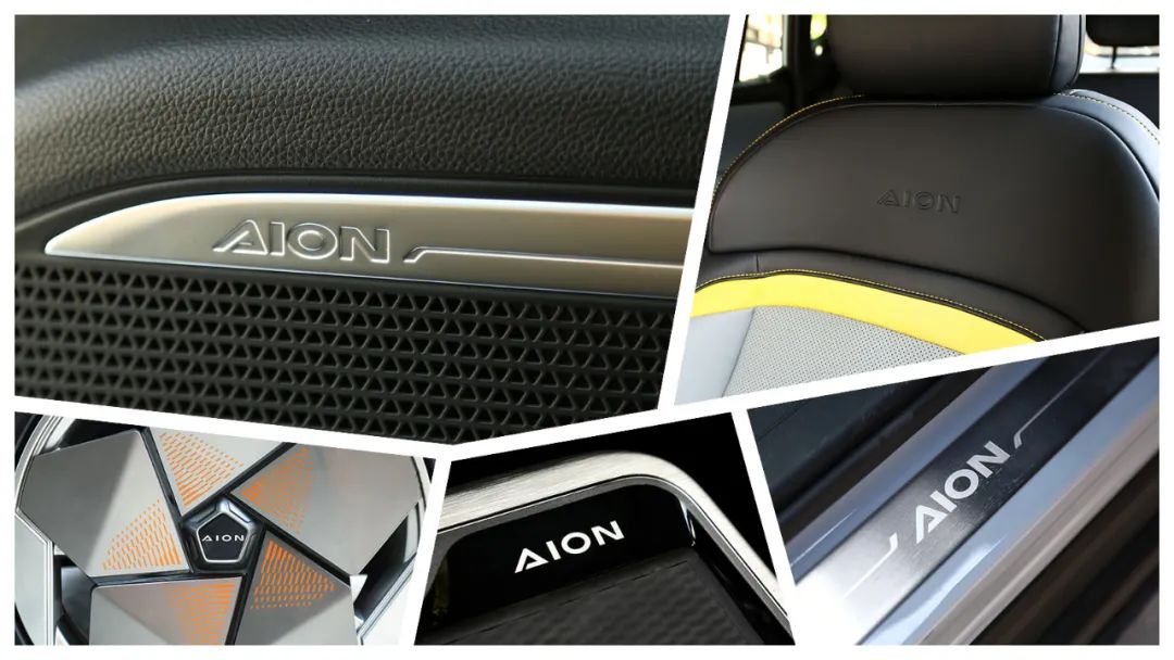 不仅是外部标识的变化,埃安品牌换新后,在新车的内饰部分也进行了不少的优化。首先最明显的变化是位于方向盘中央的“G”标LOGO换成了“AION”字样。此外,在迎宾踏板、车载音响、中控扶手以及座椅等处,也都采用了“AION”字样的标识。