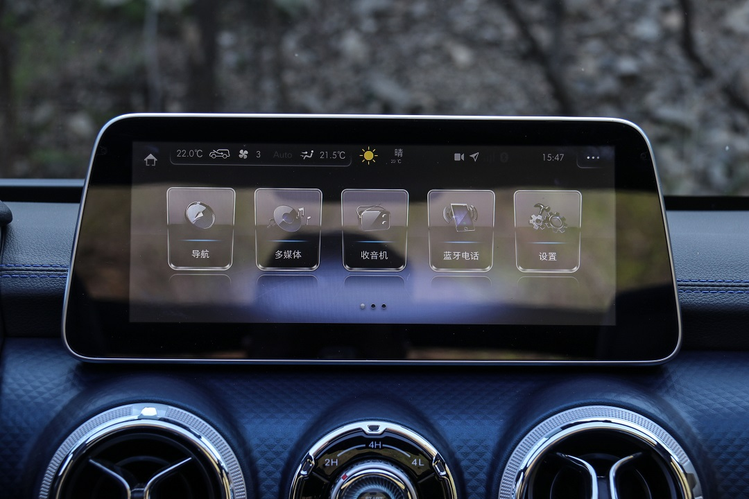 10英寸中控屏幕虽然尺寸相对来说并不算大,但是现实效果十分清晰,今天北京的阳光相当充足,在整个试驾过程中这块屏幕的清晰度并没有受到影响,同时屏幕操作起来的流畅程度更是在国内主流车技系统中保持着不错的水平。内置车技系统操作逻辑非常简单易上手,我上车之后仅用了几分钟的时间把系统已经熟悉的八九不离十了,这样简约的设计也能够满足各个年龄段消费者的智能化需求。美中不足是我和小羊本来想放上一曲广场金曲《套马杆》,谁成想找了半天这车居然没有像CarLife和CarPlay这样的手机互联功能,无奈只能打开蓝牙,回归一下原始。我相信如果能够配备CarLife和CarPlay这样的手机互联功能,一定能吸引来更多消费者。