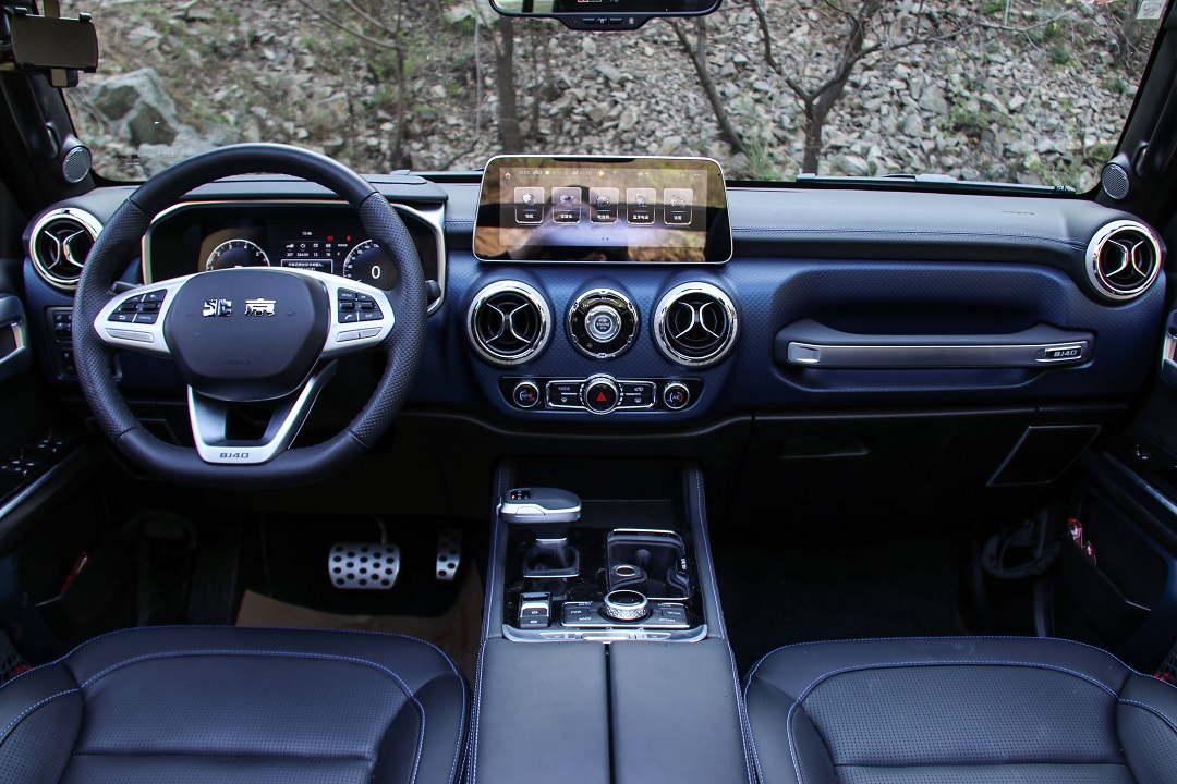 要说这2020款BJ40城市猎人版内饰与上一代车型变化明显的地方那肯定就是方向盘了,上面原来的北汽LOGO已经被醒目的“北京”二字取代,作为一名北京土著,开着这台车看着这俩字儿心里还真是倍儿自豪,不得不说,看上去确实高级了不少。前方12.3英寸全液晶仪表显示效果也同样清晰、细腻,而且为了迎合越野爱好者的用车需求。