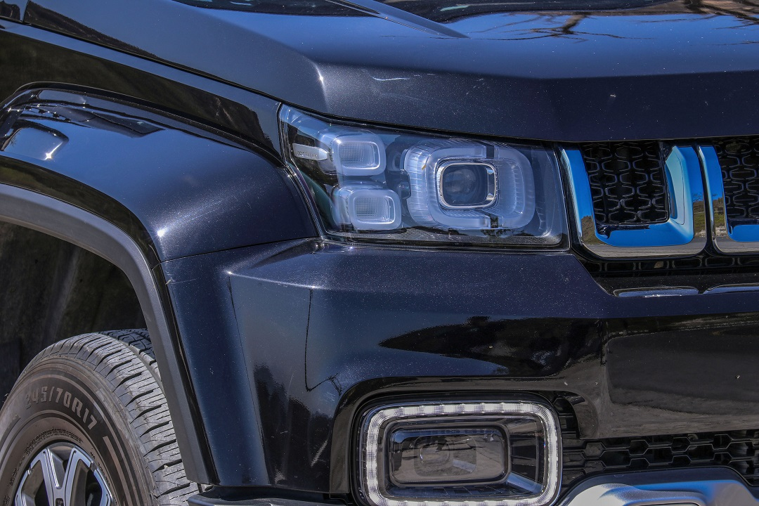虽然保持着硬朗的经典造型,但是在配置上BJ40城市猎人版明显领先同级别,就比如说车头两侧的LED灯组。要知道,全系标配LED灯组就算是40多万的Jeep牧马人 (配置|询价)也没有做到,但是BJ40城市猎人版做到了。LED光源不仅看上去科技感更强,在城市道路或者野外穿越时也能够提供更远更亮的照射效果,这一点确实要给这台车点个赞。