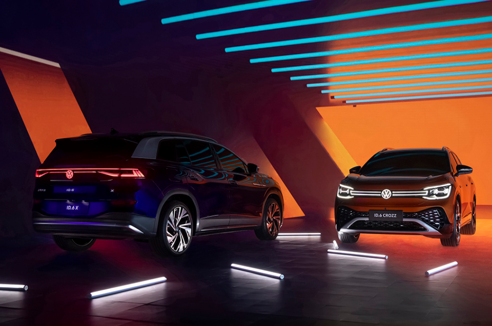 2021上海车展开幕前夕,大众汽车“抢闸”发布了ID.6车型,与ID.4车型的布局相同,ID.6在国内市场同样采用“双车发展”策略。即分别由一汽-大众和上汽大众两家合资公司投产,一汽-大众的车型名为ID.6 CROZZ (配置|询价),上汽大众车型名为ID.6 X (配置|询价),两者除了车名不同,在一些细节上也有所调整。
