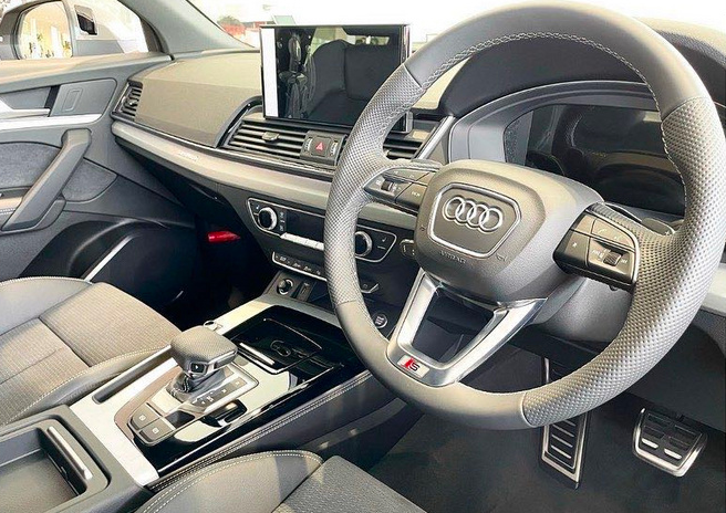 内饰配备了全新三辐式多功能方向盘,底部还加入了S-Line车型专属徽章LOGO,中控台上方搭载了全液晶数字仪表以及一台升级后的10.1英寸悬浮式液晶中控屏幕,并且支持触控反馈,取消了MMI实体操作旋钮。