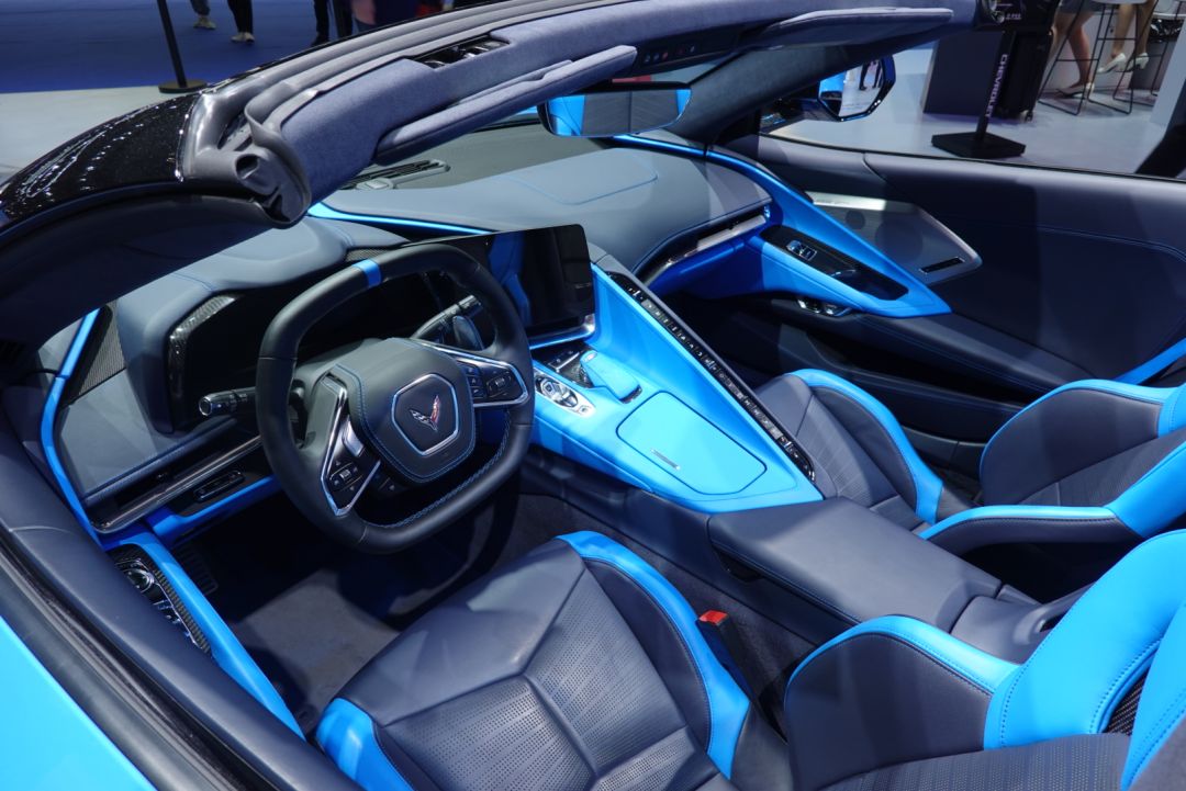 内饰方面,新款科尔维特C8采用了环抱式中控设计,中控台几乎将所有的控制按键和旋钮放置在了驾驶员右侧的面板上,同时中控屏的设计也更加倾向于驾驶者,操作起来十分方便。该车采用了全液晶仪表盘与中控多媒体显示屏的连屏设计,配合按键式换挡机构,科技感显著提升。此外,新车还装配了双辐式多功能运动方向盘,并带有换挡拨片。