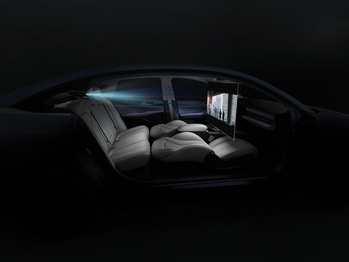 进入车内,新车的中控台上采用了15.6英寸悬浮式液晶大屏与12.3英寸全液晶仪表,支持人机交互等各种功能,还可以进行OTA换代升级。全车使用Nappa真皮座椅,头枕可根据自己喜欢舒适的角度进行翻折调节。