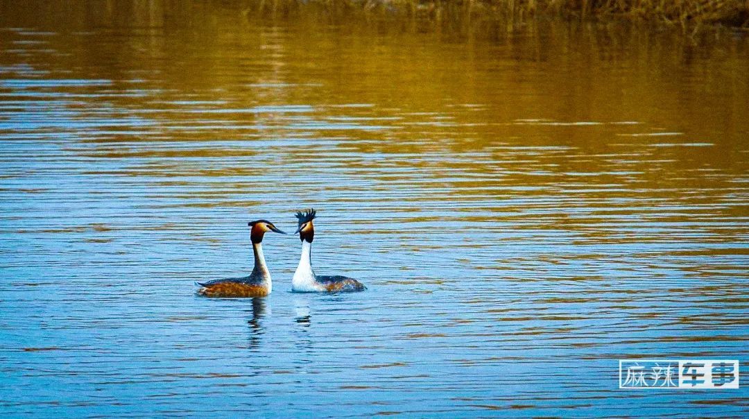 据沙湖公园的工作人员介绍,“䴙䴘”生活在湖泊,江河水库,溪流等各种水域环境中,栖息藏匿在芦苇或水草中,见人就往水里钻,所以不容易近距离观察。不过,我们去沙湖的时候,刚好天气晴朗,前后看到了大概七八只“䴙䴘”在水面短暂停留。