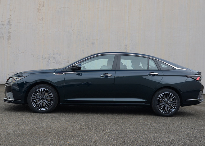 侧身整体呈现的运动感十足,采用了窄风窗的设计,隆起的线条十分彰显肌肉感,并配备多边形轮圈。
