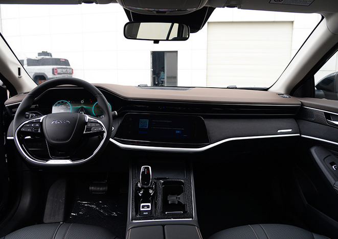 内饰方面,新车整体布局简约时尚,贯穿的银色饰条展现的非常高级,搭配全液晶仪表以及大尺寸悬浮式中控屏,同时集成了L3级别自动驾驶功能按钮。