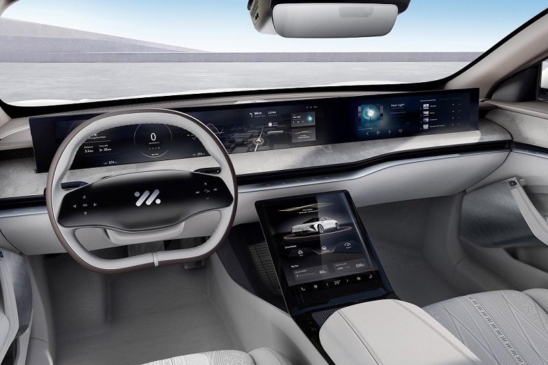 内饰方面,新车采用了极简的设计风格,看上去十分简约大气。新车还配备了三块超大屏幕,分别为中央控制屏、中控显示屏以及液晶仪表盘,从而形成了三联屏设计。另外,新车还取消了大部分物理按键,并且集成到了中控屏幕中,使车厢内部看上去更加整洁。