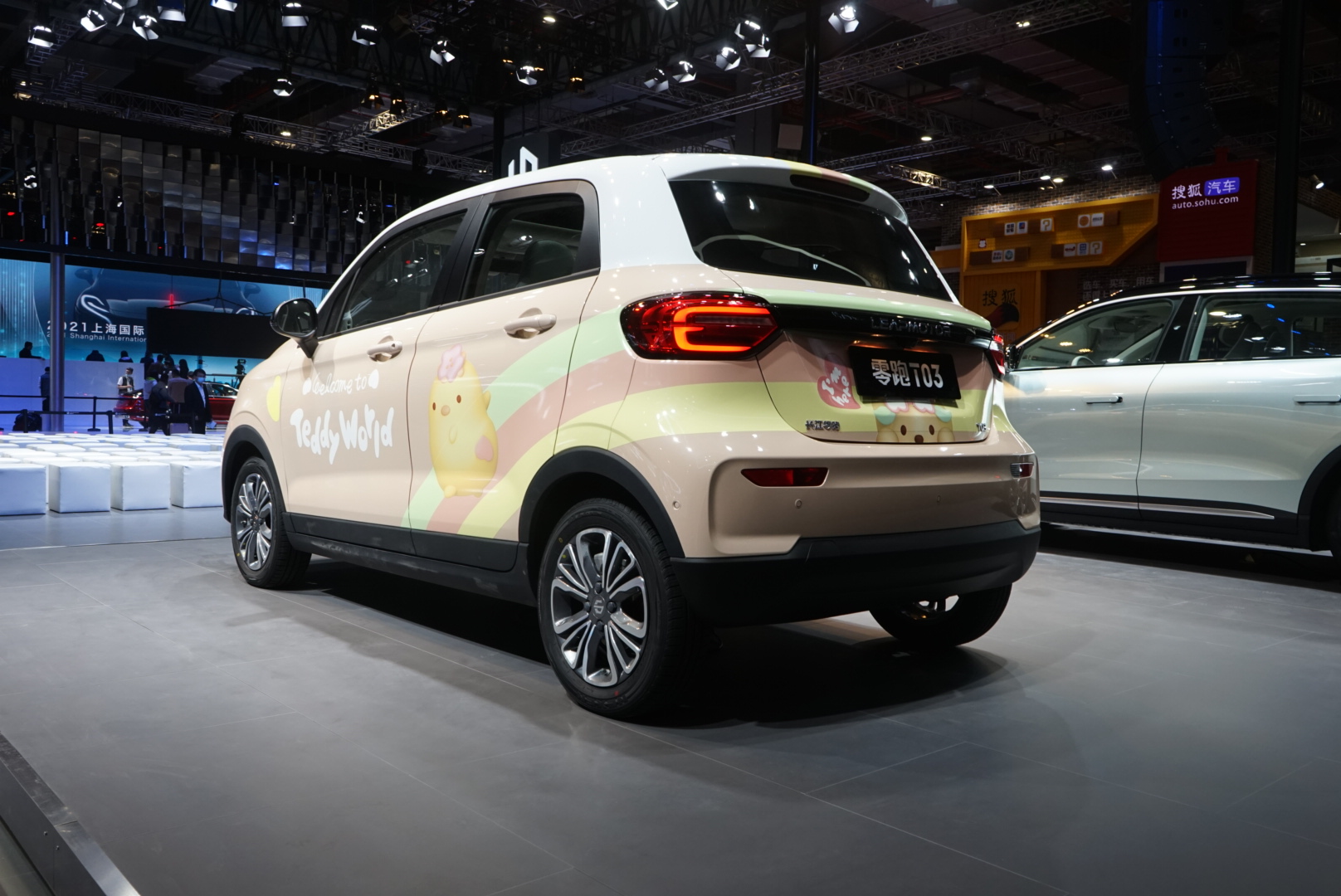 4月19日,2021上海车展盛大开幕,在本次车展现场,有车智联前方团队在车展现场拍摄到了一组2021款零跑T03 (配置|询价)泰迪珍藏版车型的实车图片。与普通版车型相比,新车在车身多处加入了泰迪熊(Teddy bear)相关的设计,让新车的风格变得更加可爱,有助于吸引年轻女性消费者的关注。