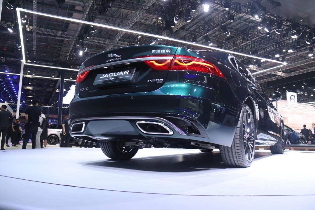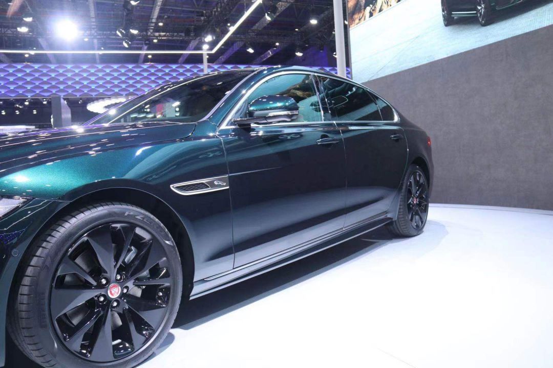 车身侧面,新款捷豹XFL并未进行太大的改动,仅对前翼子板饰件进行了优化,整体看上去依旧是经典的英伦风范。现场的展车配备了一组经过熏黑处理的五幅式轮圈,同时还在侧裙部位加入了一根银色的镀铬饰条,既优雅又运动。