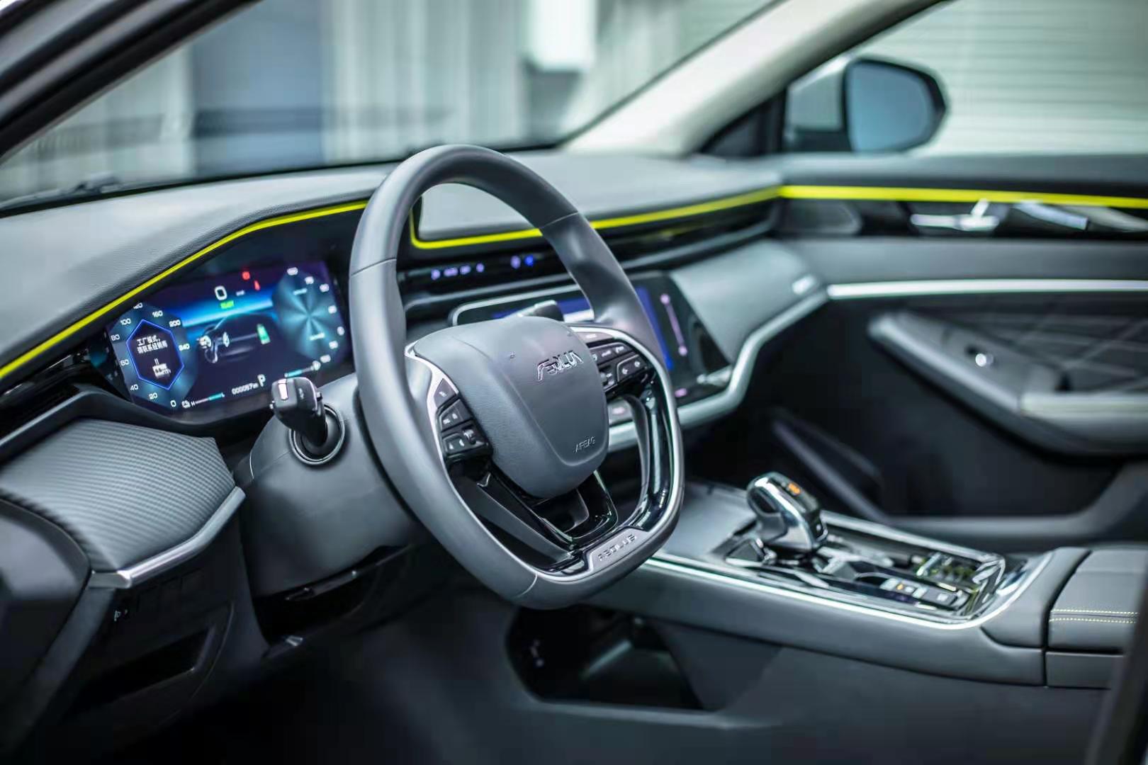 内饰造型集科技与质感为一体,通过造型美学将人机工程学和智慧科技装备完美融合。双饰条设计将仪表板与左右门板整体贯通,形成的双环抱视觉效果,同时上下饰条拉开仪表台的前后层次,让绝佳的驾驶视野和简约的视觉效果得到完美兼顾。主副仪表台采用阶梯式跃层设计,让仪表台更加轻盈立体,呈现出空间悬浮感,进一步扩展乘坐和使用空间。最佳人机工学设计的中控台设计,让驾驶更安全。隐藏式电子智能扫风出风口,造型隐藏纤细,带来智能科技的舒适感受。空调控制面板采用智能触控表面,可滑动调节风量和温度,快捷安全。