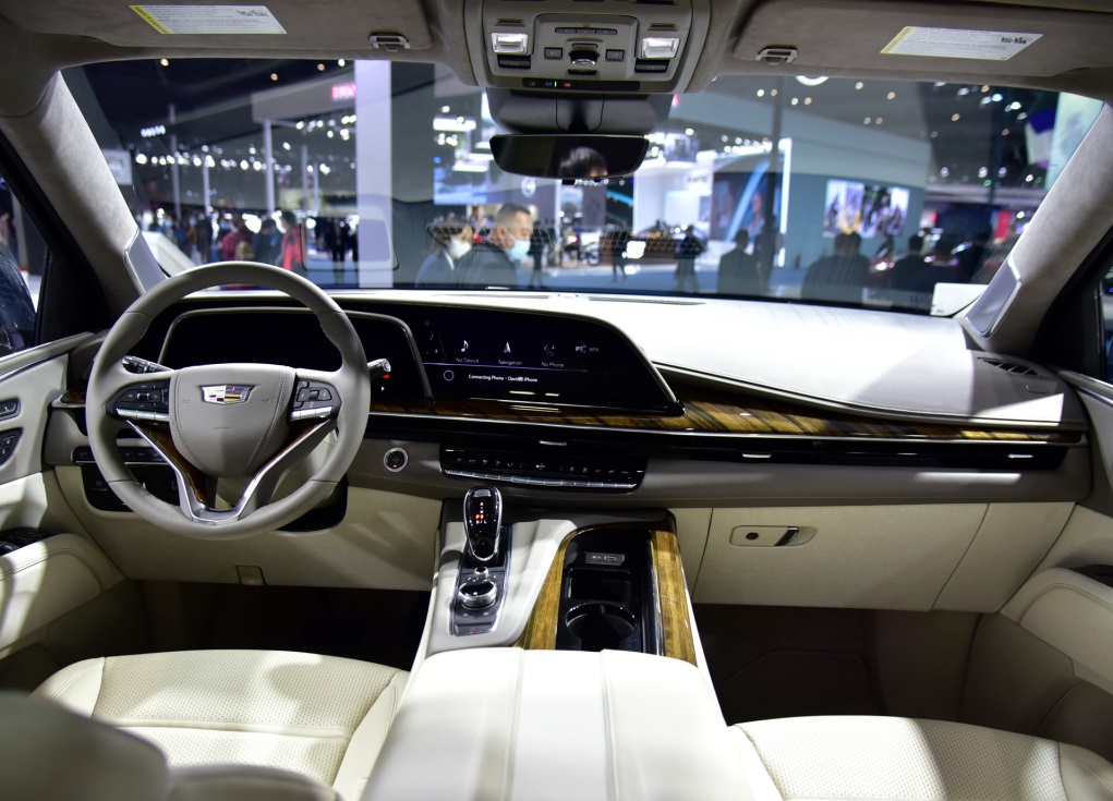 内饰方面,全新一代凯雷德将美式豪华演绎到了极致。新车整体采用了环抱式座舱的设计理念,中控区域偏向驾驶员一侧,同时还配有全新样式的多功能方向盘以及游艇式档把,能够时刻满足你的驾驶欲望。至于车内的空间?除了告诉你可以在第二排伸直腿外,笔者难以再找到其他的词来进行修饰。