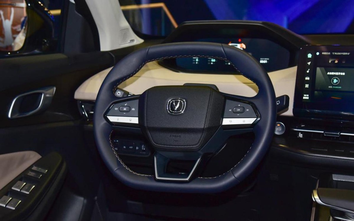 另外,这台新车的空调出风口还采用了贯穿式设计,这让它变得更有层次感。加上其所搭配的类似卡丁车风格的三幅式多功能方向盘,总体也是科技感十足。