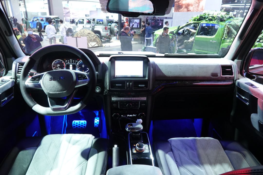 外观方面,新车采用四边形前进气格栅,在中网内部和下方两侧散热口处还使用了有碳纤维纹路的饰板进行包裹,使整车看上去拥有很强的视觉感受。同时,两侧圆形大灯既复古又彰显了其硬派越野的造型。