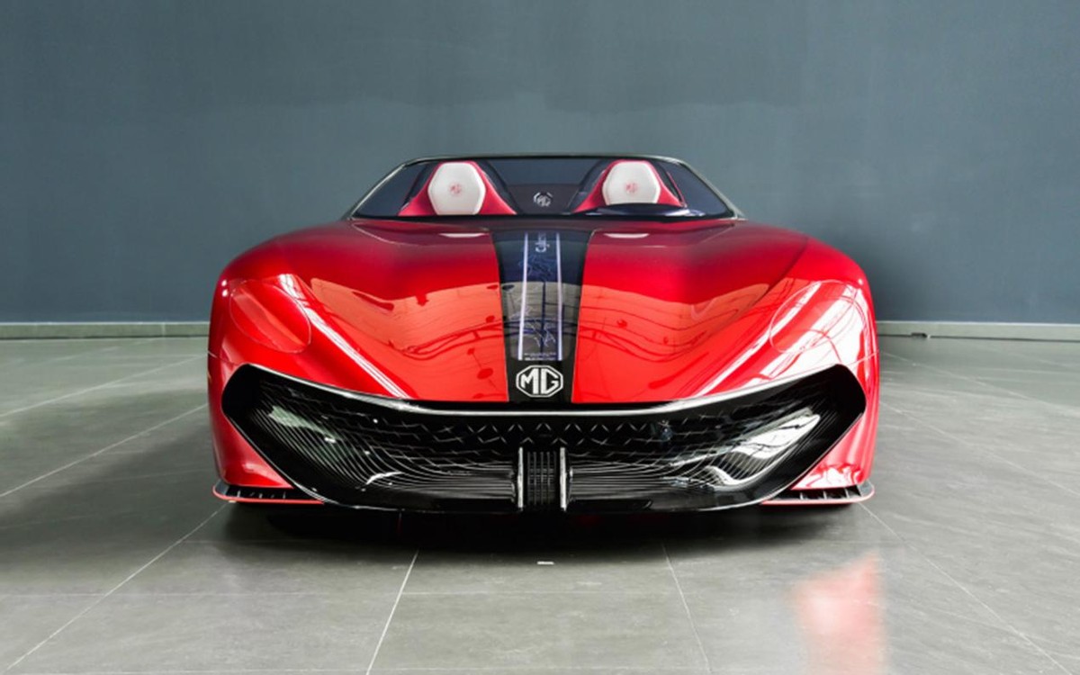 看到新车,作为一款已经接近量产的准超级跑车,MG Cyberster采用了名为“猎风者”的前脸设计理念。整个车头首先就营造出来了非常夸张的空气动力学造型,配合双片式的前唇造型,整体也是非常激进的。