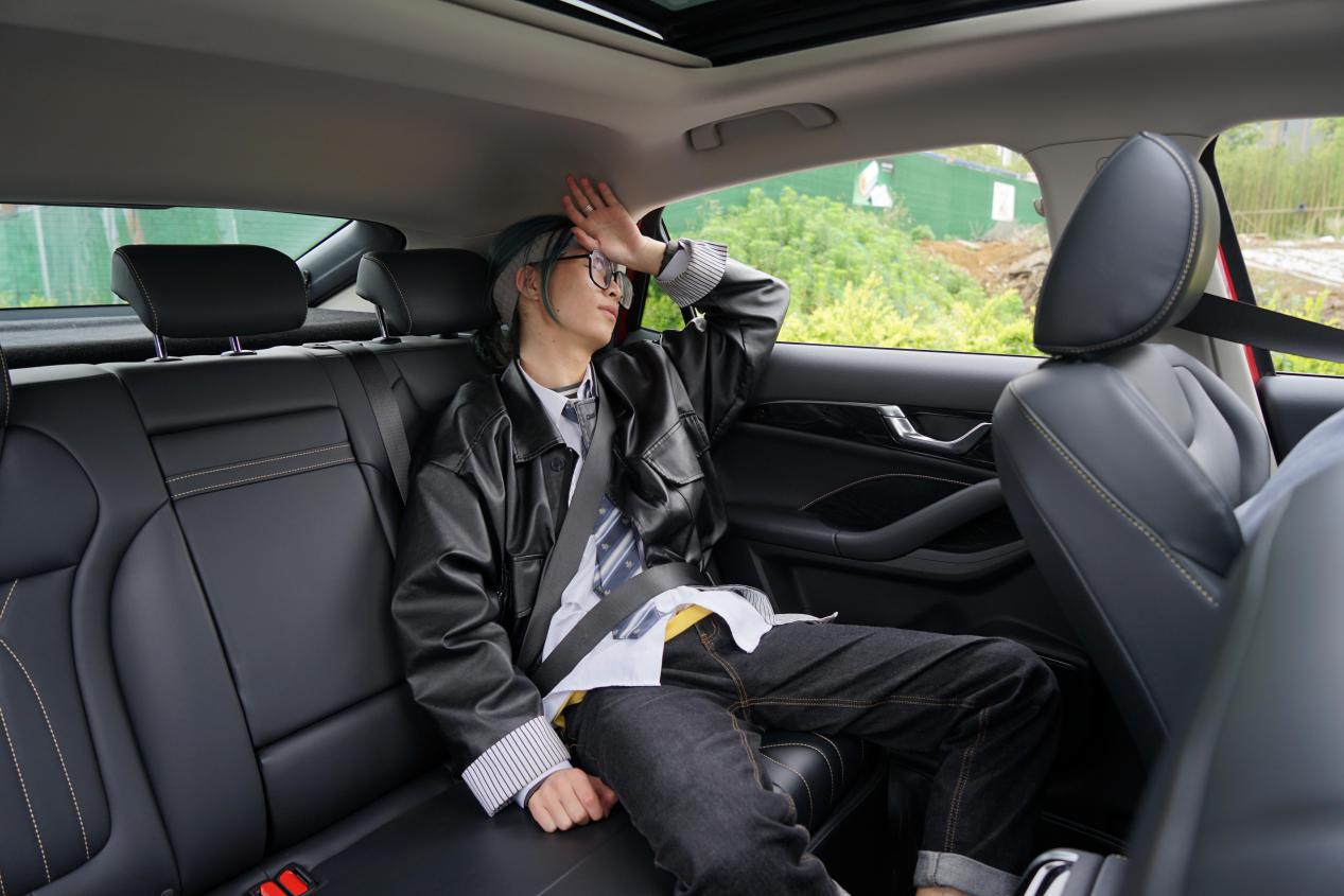 还有腿部空间也比他们的车大,我可以轻轻松松葛优躺,不会给人一种压迫感,那个星瑞坐进去就让人有一种压抑感,腿部空间也没这个大,感觉坐久了会不舒服。