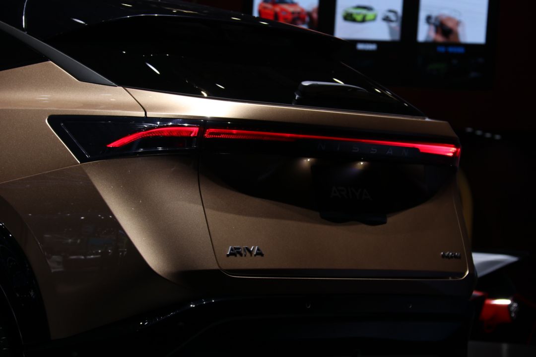 车尾部分,新车的尾部设计非常简洁,其后风挡的倾斜度很大,同时造型精致的贯穿式尾灯搭配镂空的后扰流板设计,该车的尾部增添了许些科技感。此外,日产Ariya的后保险杠层次感丰富。