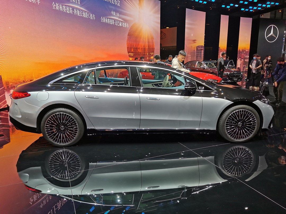 4月19日,2021上海车展盛大开幕,在本次车展现场,有车智联前方团队拍摄到了一组奔驰EQS实车图片,这也是该车的首次亮相。新车采用全新家族式设计,并且车顶使用了溜背式设计手法,是使其看上去更加时尚动感。官方称,新车的WLTP工况续航里程可达770公里。