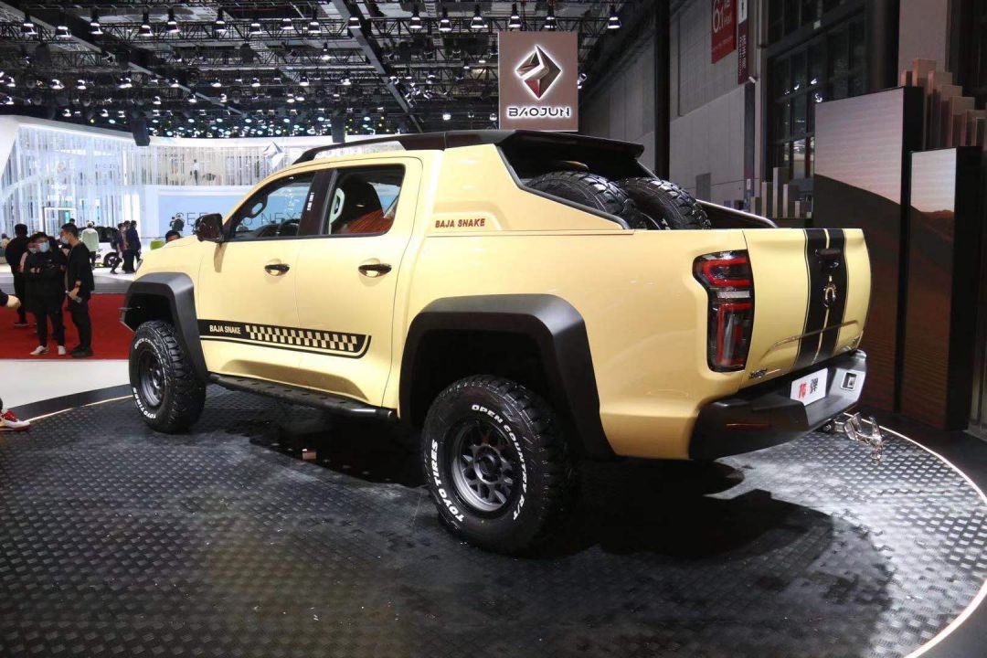 在行车尾门上方,同样加入了赛车样式拉花,并配有“BAJA SNAKE”字样,进一步彰显了该车的身份。同时,新车还配有防滚架、拖车钩等专业越野配置,这也预示着该车强大的越野能力。