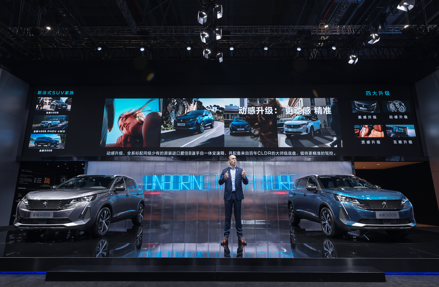 本次上市的东风标致旗下车型新法式SUV家族全新4008、全新4008PHEV 4WD、全新5008,是标致品牌全球焕新后投放的首批全新车型,是“设计更标致,产品更中国”战略的深入落地重磅产品,是引领品牌新法式风潮的全新力作。